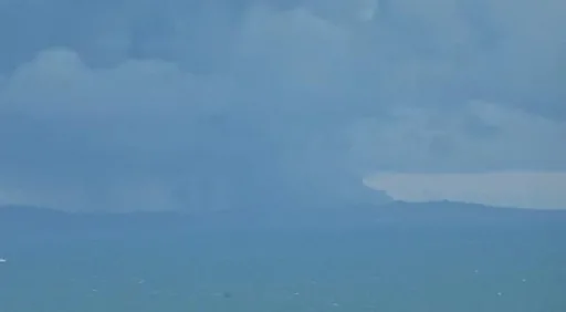 Keterangan gambar, Krakatau dari titik pengamatan di kalianda, Lampu, sekitar 40 km jauhnya. Dia juga menambahkan, bahwa angin juga kemungkinan akan membawa abu vulkanik ke arah timur.