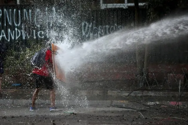 Foto-foto dunia menampilkan pengunjuk rasa yang dihantam meriam air polisi Chile hingga sukacita warga di Vietnam setelah timnas raih emas sepak bola SEA Games di Filipina.