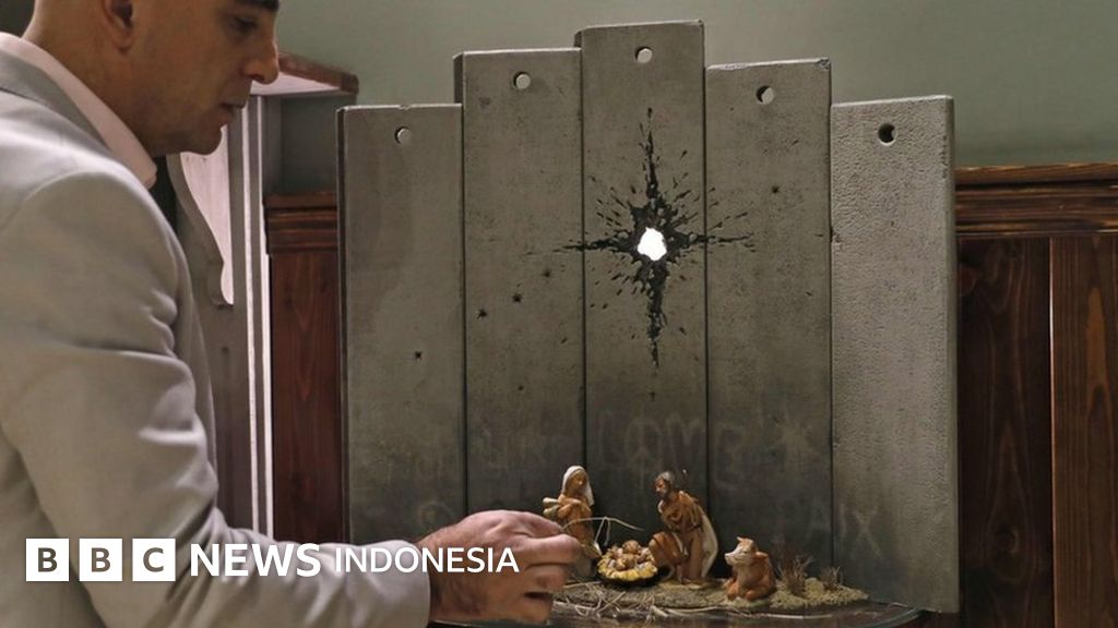 Karya seniman jalanan Banksy tentang kisah natal muncul di sebuah hotel di Betlehem