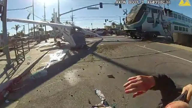 Kejadian ini, menurut kepolisian Amerika Serikat, berlangsung di Los Angeles, California, pada Minggu (09/01). Saat itu pesawat bermesin tunggal tersebut menukik dan mendarat pada jalur kereta akibat kehilangan tenaga.