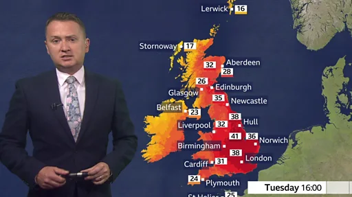 Dan pada Senin, cuaca tercatat lebih dari 38C. Suhu terpanas sebelumya di Inggris mencapai 38,7C di Cambridge pada 2019.