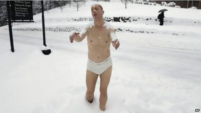 Sebuah patung manusia yang seakan berjalan di tengah salju menuai beragam reaksi dari para mahasiswa di Wellesley College, Massachusetts, Amerika Serikat.