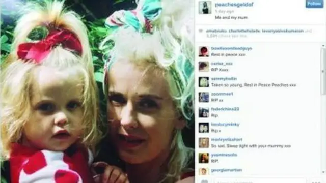 Sebelum kematiannya, Peaches Geldof mengunggah foto masa kecilnya dengan ibunya di Twitter dan menulis "Saya dan ibu saya."