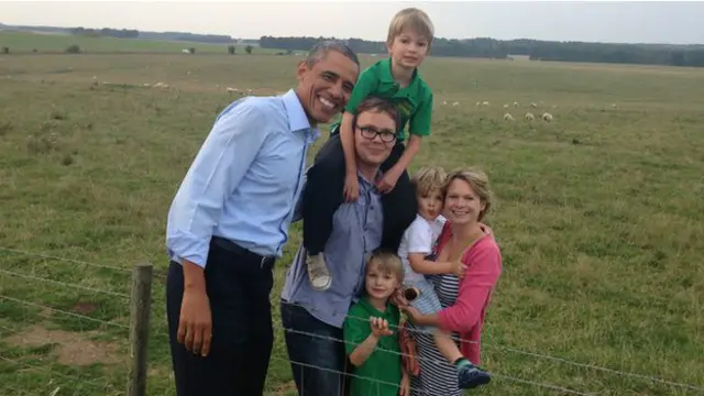 Janice Raffle, yang tinggal di dekat Stonehenge, datang ke monumen bersama suami dan tiga putra setelah mendengar Obama ada di sana.