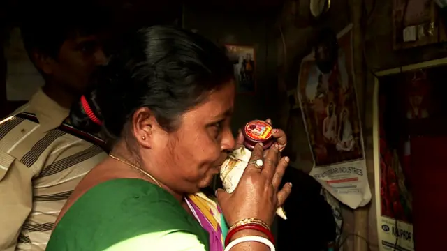 Ia memasak makan siang, mengaduk kuali berisi nasi di atas kayu bakar di luar gubuk mereka. Ia harus memasak setiap hari karena mereka tidak bisa menyimpan sisa makanan. Jadi Santosh harus pergi ke pasar pagi-pagi setiap hari untuk berbelanja.