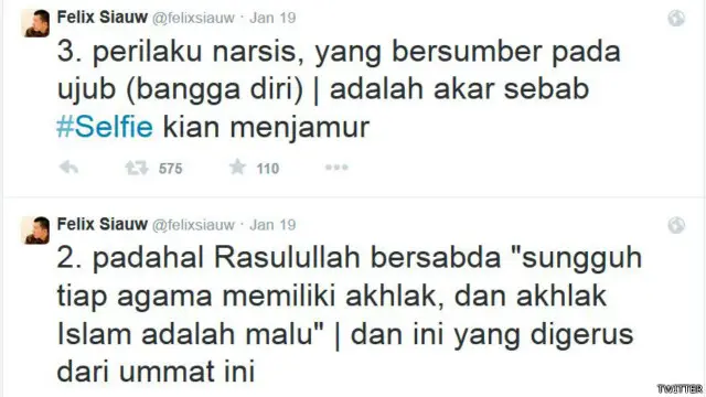 Felix Siauw mengaku banyak orang lantas keliru menafsirkan maksud pernyataannya sehingga menciptakan kontroversi. Kepada BBC Indonesia Felix mengatakan yang dia maksud adalah niatan di balik selfie yang harus diperhatikan.