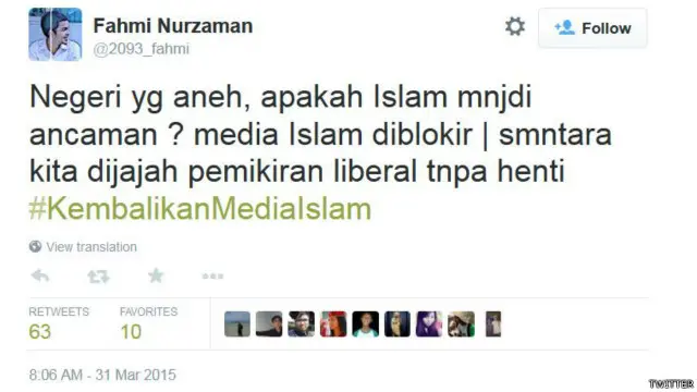 Lalu, pada Senin (30/03) sore, tagar #KembalikanMediaIslam muncul di sejumlah jejaring sosial.