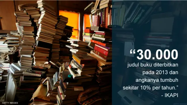 Setidaknya ada sekitar 30.000 judul buku yang diterbitkan tahun 2013, dengan kenaikan rata-rata 10% per tahun, menurut data IKAPI -menunjukan optimisme terhadap produksi buku di Indonesia.