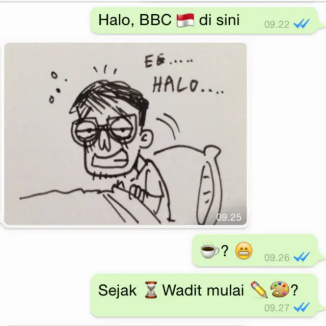 BBC Indonesia mengajak pendiri sekolah animasi Hello Motion Academy ini melakukan wawancara emoji melalui ponsel.