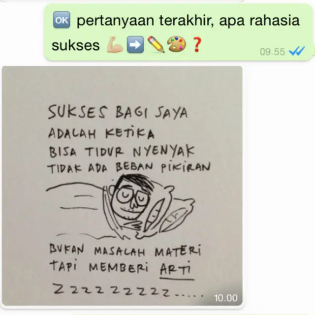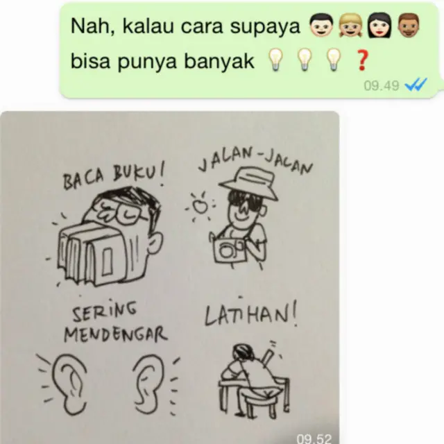 "Menggambar bukan hanya untuk kesenangan, tapi banyak manfaatnya. Mengembangkan kreatifitas, mengungkapkan gagasan baru," kata penulis buku Sila ke 6: Kreatif Sampai Mati ini.