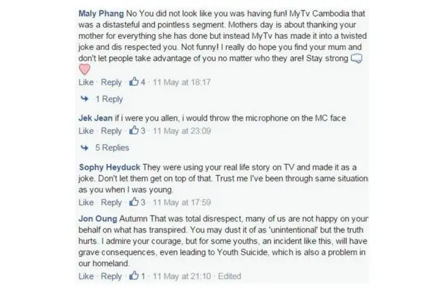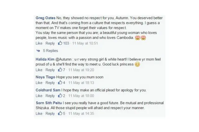 "Seorang anak 13 tahun menunjukkan sikap lebih dewasa dibandingkan produser-produser acara ini," tulis seorang penggemar Autumn, Socheathiya Teng.