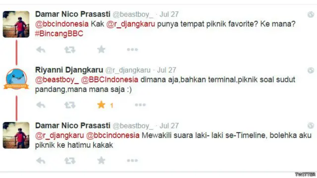 Nani Masriah (@nanimasriah): Apakah Mbak Riyani sudah menjelajah semua wilayah Indonesia? Wilayah mana yang menjadi favorit Mbak? #BincangBBC