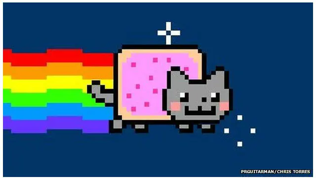 Video kucing ini didesain pertama kali oleh seniman Chris Torres pada 2011, digambarkan dapat terbang dengan pelangi yang muncul dibelakangnya.
