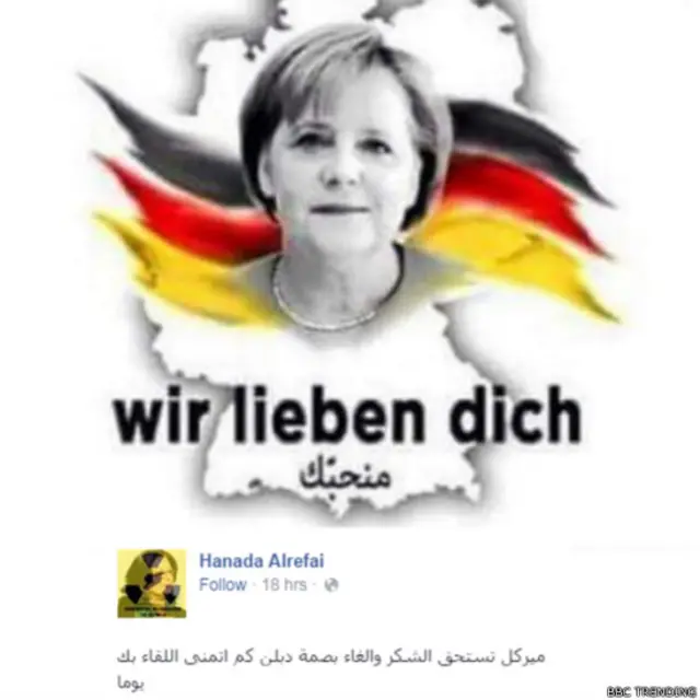 "Kami mencintaimu" bunyi sebuah komentar berbahasa Arab. "Merkel berhak diberi ucapan terima kasih karena membekukan aturan Dublin. Saya sangat ingin bertemu Anda satu saat nanti."