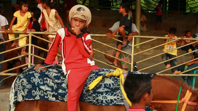 Di Sumba, anak-anak sudah mulai bekerja sebagai penunggang kuda professional, sejak umur lima tahun.