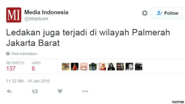 Akun Twitter Media Indonesia juga sempat memberitakan hal yang sama.