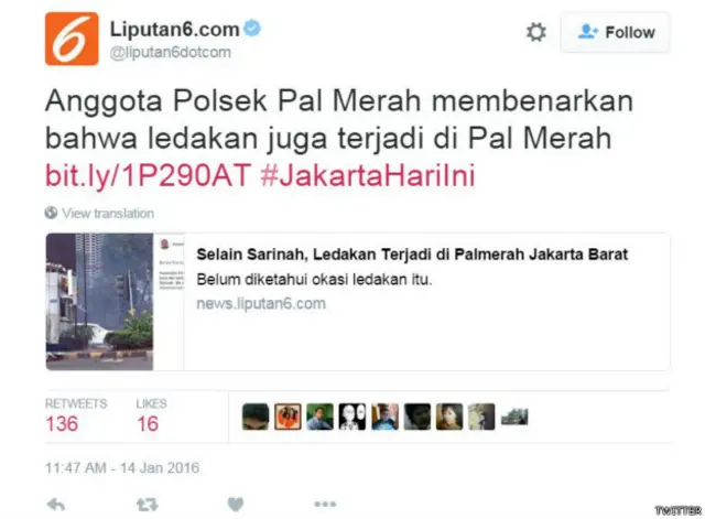 Namun sebenarnya, bukan hanya lima media massa itu yang memberitakan tentang ledakan selain di Sarinah. Liputan6.com mengutip anggota Polsek Palmerah membenarkan terjadinya ledakan.