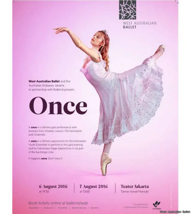 Kelompok balet asal Australia, West Australian Ballet, WAB akan menggelar pentas di Taman Ismail Marzuki, yang merupakan pentas pertama mereka dalam waktu 20 tahun terakhir di Indonesia.
