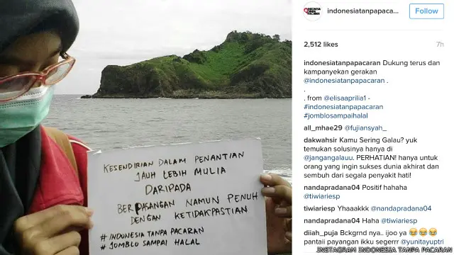 Sebuah gerakan di media sosial menyerukan agar anak muda tidak pacaran karena dinilai sebagai 'bentuk kemaksiatan,' namun seruan ini juga mendapat banyak kritikan.