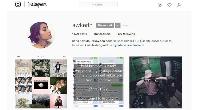 Lewat akun Instagramnya, perempuan berusia 19 tahun itu seringkali mengunggah fotonya mengenakan pakaian ‘minim.’ Awkarin juga kerap memamerkan fotonya berciuman dengan kekasihnya.