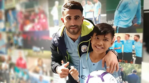 Korban gempa Palu, Rizky, bertemu idolanya, bintang Manchester City Riyad Mahrez