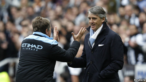 Manajer City Roberto Mancini jagokan MU raih juara Liga Primer musim ini.