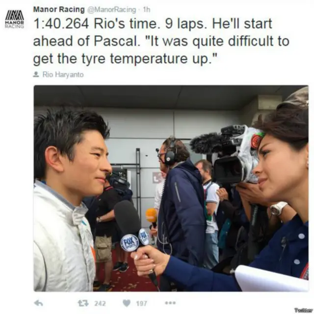 Kemudian di depan Wehrlein adalah sesama pengemudi tim Manor Racing, Rio Haryanto. Pembalap asal Indonesia itu bakal start di urutan ke-20 setelah mencatat waktu 1:40:264.