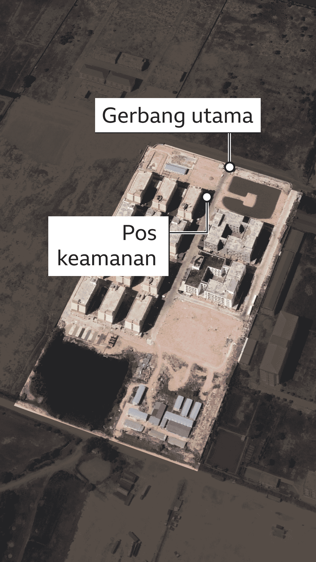 Para penjaga rutin berpatroli dari gedung ke gedung.