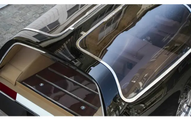 Tidak ada hatch atau "pintu" di bagian belakang, hanya, jendela kaca hampir vertikal yang bisa dibuka. Bagian bagasi dilapisi dengan kayu polesan, diakses melalui "gullwing," kaca melengkung di kiri kanan body mobil, dan berengsel di bagian atas, sehingga bagai jendela yang dibuka ke atas.