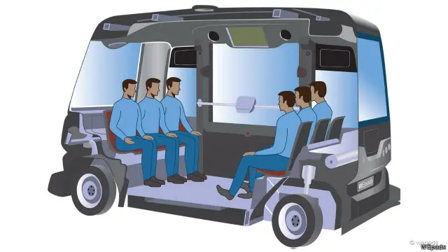 Kendaraan ini bisa dipanggil ke satu titik perhentian dengan menggunakan aplikasi ponsel pintar, pintu bus akan terbuka untuk mengangkut hingga 12 orang, dan melaju dengan kecepatan 24 km/jam.