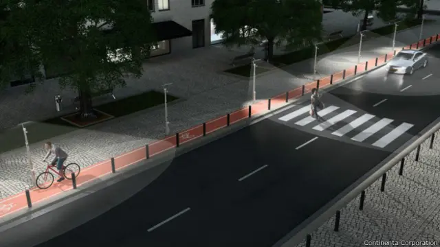Dan, jika alat ini bisa berkomunikasi, dia bisa berbicara banyak hal. Dia bisa mendeteksi pesepeda yang mendekat dan memberi cahaya sepanjang yang dibutuhkan untuk lintasannya. Dia bisa berubah warna menjadi hijau untuk memberitahu pengendara motor bahwa ada tempat parkir yang kosong.