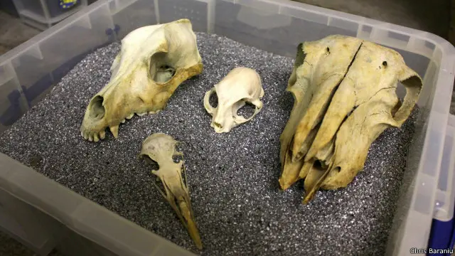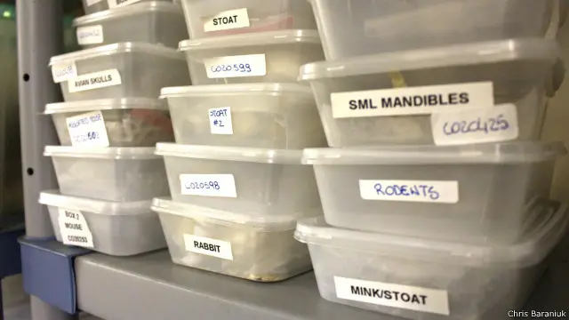"Tugas mereka adalah menghilangkan jaringan otot," kata Black. "Jadi jika seseorang menabrak kelinci di jalan dan membawanya pada kami, para pengumpul tulang akan mengulitinya dan meletakan bangkainya di antara kumpulan kumbang."