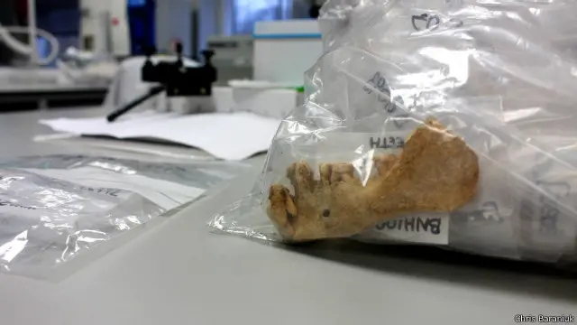 Dalam kasus ini, tulang itu manusia tetapi sepertinya tergolong purba. Dari ratusan kasus yang diterima oleh layanan ini tiap tahun, hanya satu atau dua yang mungkin saja tulang manusia, dan dengan demikian bisa banyak menghemat uang dan waktu polisi. Sekarang, layanan tulang belulang ini akan memberitahu polisi dan merekomendasi mereka untuk bertanya pada arkeolog lokal apakah wilayah itu adalah lokasi pemakaman purbakala.