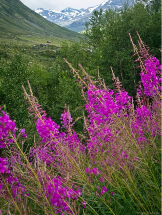 Rasa tenang dan damai melingkupi saat memulai perjalanan di Jalan Sognefjellet. Perlahan kendaraan meninggalkan Kota Lom yang terletak di pegunungan dan mulai meluncur di tepian Sungai Bøver. Sesekali puncak gunung yang tertutup salju tampak ketika melewati lembah nan sunyi. Perjalanan melintasi Jalan Sognefjellet harus disiapkan dari jauh hari karena selama setahun jalan tersebut hanya dibuka dari Mei hingga September. Di luar masa itu, Jalan Sognefjellet tertutup salju setinggi lebih dari satu meter. Tatkala saya melewati bagian pertama jalan tersebut pada awal Agustus, padang dipenuhi bunga-bunga ungu. (Foto: Stuart Butler)