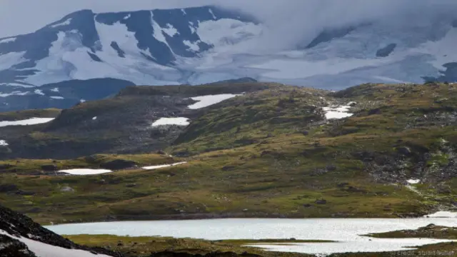 Pada titik tertinggi di Jalan Sognefjellet terdapat Danau Smørstabbreen (foto di atas), sejauh 49 kilometer sebelah barat Kota Lom. Jalan Sognefjellet, yang terbentang pada ketinggian 1.434 meter di atas permukaan laut, kerap dianggap sebagai jalan pegunungan tertinggi di bagian utara Eropa. Mungkin karena terinspirasi keindahan di wilayah ini, pujangga Norwegia pada abad ke-19, Aasmund Olavsson Vinje, menggambarkannya sebagai dunia yang dihuni raksasa dan troll. Namun, ketika manusia menemukan api, mereka mengejar mahkluk-mahkluk tersebut ke utara sampai jatuh dari pinggir bumi. Air mata, yang makhluk-makhluk itu keluarkan saat dikejar, membeku ke pegunungan dan danau-danau di sekitar. Ketika hari cerah, Danau Smørstabbreen menjelma menjadi pemandangan paling menakjubkan yang disaksikan dari atap Norwegia. (Foto: Stuart Butler)
