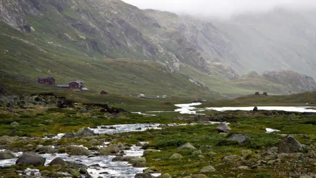 Terletak sekitar 37 kilometer sebelah barat Kota Lom, penginapan Krossbu Turiststasjon ialah titik awal pendakian di Taman Nasional Jotunheimen. Dari penginapan tersebut, rute pendakian paling populer ialah jalan pergi-pulang sejauh 6 kilometer menuju kaki glasier Smørstabbreen. Ada pula pendakian jarak jauh yang meliputi tiga malam perjalanan melintasi taman nasional melalui pondok penginapan Skogadalsbøen dan Vettisfossen (Foto: Stuart Butler)