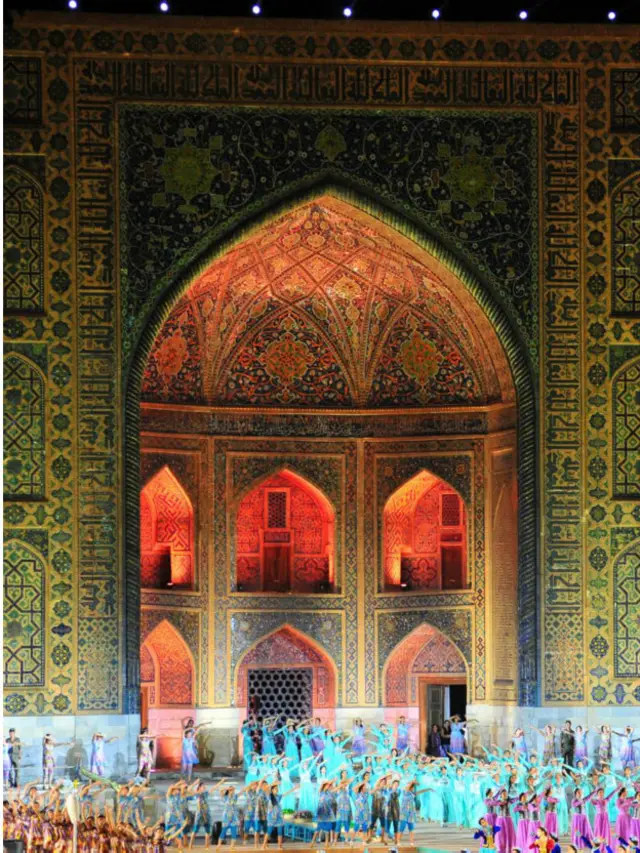 Meskipun kekaisaran yang dibangun Timur Lenk -dikenal juga sebagai Tamerlane- membentang dari lokasi yang sekarang adalah India hingga Turki, dan dari Rusia sampai Arab Saudi, jantung kekuasaannya adalah Registan (bahasa Persia yang berarti "tempat berpasir") di Samarkand. Alun-alun ini dulunya merupakan tempat penyelenggaraan acara-acara kerajaan rumah bagi proklamasi kerajaan - juga eksekusi di depan umum. Sekarang, tempat ini digunakan untuk acara-acara penting, termasuk festival-festival musik.