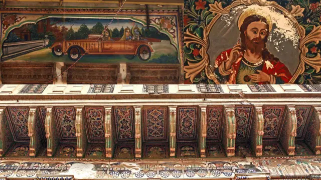 <bold>Membanjiri kota berdebu dengan warna-warni</bold> - Dengan lukisan yang menutupi hampir semua jengkal kediaman besar, kota-kota dan desa-desa di Shekhawati menjadi wilayah yang memiliki lukisan dinding terbanyak di dunia. Untuk melindungi harta berharga ini dari kehancuran yang lebih jauh, dua distrik di Shekhawati melarang penjualan kediaman bekas saudagar kepada siapa saja yang dapat membahayakan warisan budaya itu. Tujuan mereka adalah merawat dan mempromosikan Shekhawati tempat tujuan wisata. (Kredit: Neelima Vallangi)