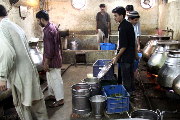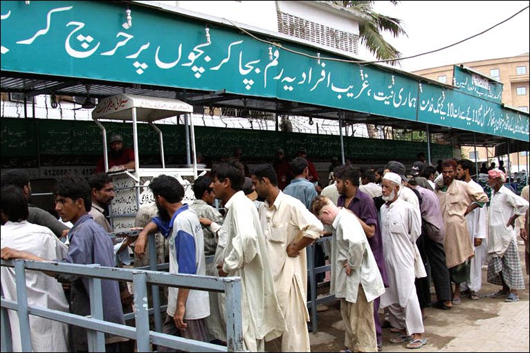 Resesi ekonomi global berdampak kuat bagi warga Pakistan. Setiap hari yayasan amal di pusat kota Karachi ini menyiapkan makanan untuk 40.000 orang