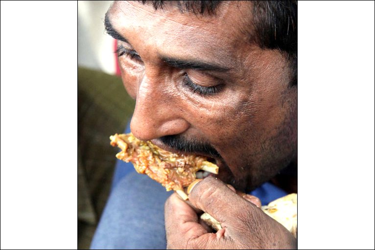 Pria ini menikmati daging kambing. Dia mengatakan daging adalah makanan mewah yang tidak lagi mampu dibeli karena berharga lebih tinggi dari upah harian yang didapat.