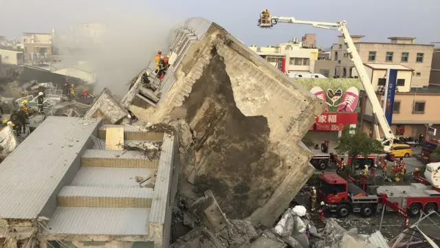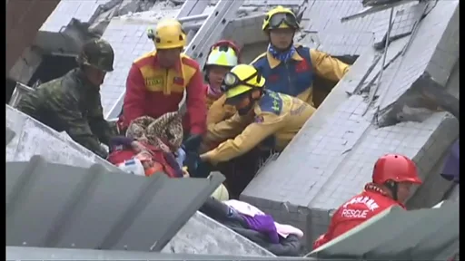 高雄市を震源とする地震で、少なくとも14人の死亡が確認されている。350人近くが瓦礫から救出された。