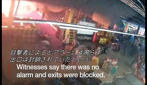 2階にあった店舗で働いていた店員の娘は、「アラームは鳴らず、(中略)母は彼女の前を走り去る男性から火事のことを教えてもらった。従業員による助けは何もなかった」と語った。