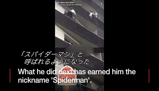 ソーシャルメディアに投稿された動画には、ガッサマさんが見守る人々の応援を受けながら、バルコニーからバルコニーへと次々とよじ登り、4階にたどり着く様子が映っている。