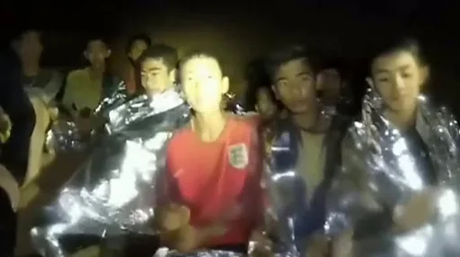 動画では、水位より上の岩棚に座り、懐中電灯に照らされた少年たちの姿が確認できる。少年たちはダイバーの問いかけに対し、13人全員がそこにおり、とてもお腹が空いていると答えた。