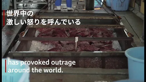 商業捕鯨が再開された7月1日には、クジラが水揚げされ、食用に解体された。