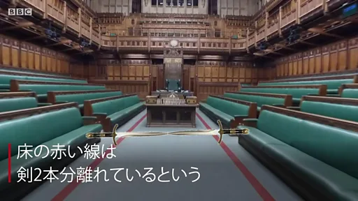 横幅4メートルにもなるこの作品は2009年に制作されたもので、チンパンジーに占拠されたイギリス下院が描かれている。