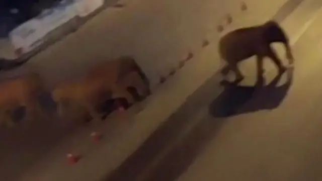 画像提供, A herd of Asian elephants has been wandering throu
