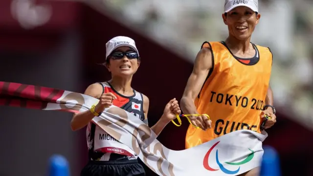 女子マラソンT12(視覚障害)は、午前6時50分にオリンピックスタジアム(国立競技場)をスタート。道下は伴走者とともに先頭グループでレースを進め、30キロ過ぎでエレーナ・パウトワ(35、ロシアパラリンピック委員会)を振り切り、独走態勢に入った。