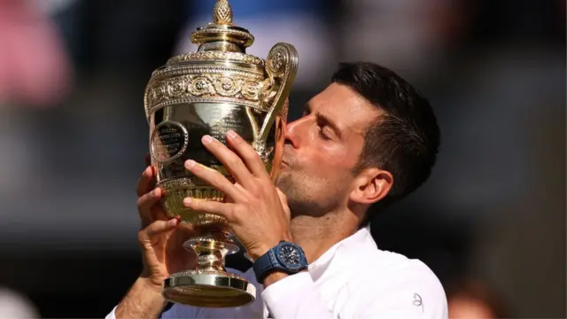 ジョコビッチのウィンブルドン優勝は通算7度目。これはロジャー・フェデラー(スイス、最多8度の優勝)に次ぐ記録。