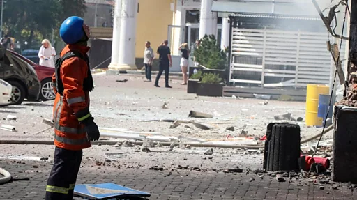 ウクライナ北部都市の中心部にミサイル攻撃、6歳少女ら7人死亡144人負傷と